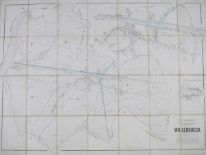 Plan parcellaire figurant le canal Willebroek-Brussel, la rivière Rupel et les différents quartiers de Willebroek à Anvers à l'échelle 1/5000. Avec plans supplémentaires du village (1/2500) et de Klein-Willebroeck (1/2500).