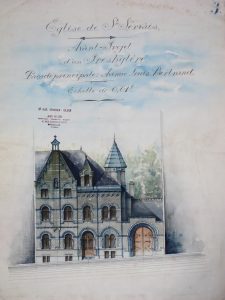 Veuve STRUYVEN-GILSON & GILSON, Jean.- " Église de St Servais. Avant-Projet d'un Presbytère. Façade principale : Avenue Louis Bertrand". Circa 1907.