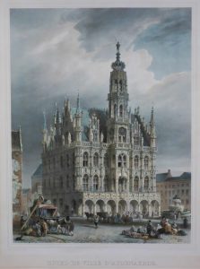 SIMONAU, Gustave (Bruxelles 1810-1870).- " Hôtel-de-ville d'Audenaerde". Bruxelles, imprimé par P. Simonau, Lithographe-Éditeur, 1844.