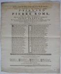 Placard commémorant les voeux de "Fre. Bernard autrement Pierre Roms" dans le couvent de Saint-François sur Sambre, Brux., 1755 (mouil. dans le haut).