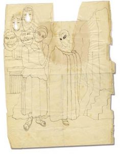 cahier de brouillon, relié d’origine en toile, sur du papier ligné avec quelques pages volantes. Nombreuses notes au crayon, un titre « Le discours du Grand Sommeil », avec des sous titres, La Chrysalide, Le Potomak, Le Cap, etc. Un dessin au crayon représentant un jeune homme de dos coiffé d’un chapeau avec une grande plume. Quelques pages plus loin, de nouveau une page de titre en grandes lettres manuscrites « Le discours du Grand Sommeil ». Suivent 3 pages manuscrites à la plume d’une très importante ébauche du poème précité, puis 3 pages au crayon qui en sont la suite. Quelques pages plus loin un important manuscrit à la plume de l’article sur le Diable au corps, sur 5 pages, probablement le brouillon de l’article publié dans la Nrf n°115 d’avril 1923. Quelques pages plus loin une page avec le dessin à la plume d’un profil de jeune homme (Radiguet ?). Ala fin du cahier, 4 pages avec un brouillon de notice pour « Crépuscule des Dieux » d’Élémir Bourges et 4 lignes raturées concernant Radiguet et la réclame pour son livre. Ala dernière page, une liste manuscrite de 12 personnalités : Tristan Tzara, Francis Poulenc, etc. Sur feuilles libres : — Sur deux feuilles : Dessins à la plume (Antigone et Ismène) reproduit dans Opéra bis de Jean Cocteau, p.27. — 1 page recto-verso de corrections manuscrites d’un texte de Jean Cocteau. — 2 pages autographes d’un texte non identifié. Au cours de l’hiver 1915 Cocteau fait sa première expérience du front: toujours sous l’insigne de la Croix-Rouge, il partage à Coxyde et Nieuport, le quotidien des zouaves et des fusiliers marins ; ce séjour de plusieurs mois laisse une trace profonde dans son esprit et dans son oeuvre : il constitue le cadre du roman Thomas l’Imposteur et du Discours du Grand Sommeil préalablement intitulé Secteur 1(nom que nous retrouvons ici dans ce manuscrit), du nom du secteur postal occupé par Cocteau sur le front belge. On joint 2 petites photographies, l’une sépia, passée, représentant Cocteau jeune, l’autre un petit découpage de photographie avec un personnage non identifié.