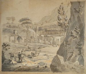 PAYSAGE ITALIEN AVEC BERGERS, chasseur, vaches et chèvres. [Fin 17e-début 18e siècle].