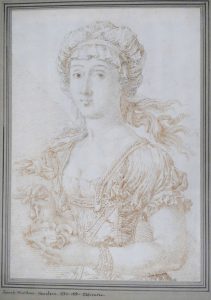 DESSIN ORIGINAL au trait à l'encre bistre sur légère esquisse à la mine de plomb, 31,5 x 22 cm, papier vergé filigrané (trois monts enserrés d'un ruban surmonté d'une étoile et d'une tiare papale), mention moderne d'attribution et de titre à "Jacob Mathan [sic]. Haarlem 1570-1631.