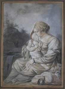 ESCHARD, Charles (1748-1810).- Mère allaitant assise dans un paysage avec chute d'eau. 18e siècle.