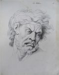 • 1 suite de 19 dessins et 1 titre en néerlandais, +/- 12 x 22 cm, sur très fin papier vélin, figurant diverses expressions. Le titre est la traduction de celui de Le Brun ("Aftekening en Verbeelding der Hartstogten naer de tekeningen van Mr Le Brun uit 't koper grabragt door Monsr le Clercq") et les 19 dessins, composés chacun de 3 têtes (face et profil), sont titrés en latin, allemand, néerlandais et français,
