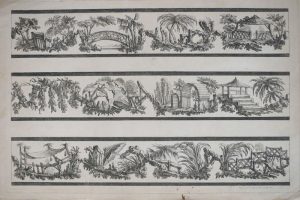 (1). PILLEMENT, Jean (Lyon 1728-1808).- 10 planches dont le titre "Recueil de fleurs chinois [sic] et autres propres à plusieurs usages, inventé et dessiné par Jean Pillement et gravé par P.C. Canot. Paris, Leviez; Londres, 1760", 43 x 31 cm. Planches extraites d'un ensemble quasi jamais complet composé de +/- 200 pièces.-- [Idem].- 3 ff. d'une autre suite + 1 titre ("Petits ornements chinois").--