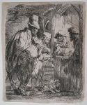 Eau-forte, cuv. 13,7 x 11,5 cm, papier vergé, signée en bas, fixée par les coins dans passe-partout (rognée en deca de la cuv., 2 déchirures avec pet. manques au coin infér. dr., 2 bords lég. brunis). # Bartsch, Hollstein 119.