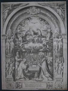 GHISI, Giorgio Mantovano (c. 1512/20-1582).- Saint Laurent et Saint Sixte, accompagnés des SS. Pierre et Paul, en adoration devant le Couronnement de la Vierge; [D'après Federico ZUCCARO (c. 1543-1609)]. Mantua, Adam Ghisi, [après 1576].