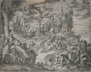 •ODDI, Mauro (1639-1702).-- Scène biblique. [D'après Francesco PARMIGIANINO (1503-1540)], (pet. manque au coin infér. dr., collée idem).