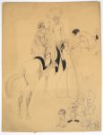 (3). VAN MELKEBEKE, Jacques (1904-1983).- Composition avec personnages grotesques, cavaliers et danseuses. Mine de graphite, 36 x 27 cm, signée et datée 1927.--
