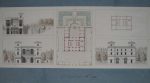 Feuille "esquisse" comportant les plans du rez-de-chaussée (avec jardin) et de l'étage, deux élévations (façade principale et arrière) et une coupe longitudinale de cette demeure "contenant les distributions commodes et agréables pour un particulier aisé et sa famille, ladite dans un terrain de 24 mètres sur 16 mètres" dans le style néo-Renaissance italienne. Mise au net des esquisses préparatifs (à dater au 1er février 1810) du projet avec lequel Tilman-François Suys (1786-1861) remporta, le 27 mars 1810, le second prix à l'École Spéciale d'Architecture de Paris.