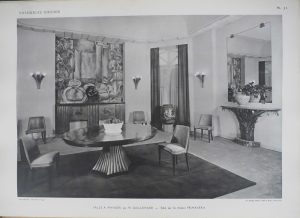 Paris, Ch. Moreau, [c. 1925]. In-f° : [4] ff.; 32 h.-t. (complet). En ff., sous chemise d'édition à lacets (us.). Décors de salons, salle à manger, bureau, chambre à coucher, etc., par Majorelle, Paul Follot, Louis Jallot, Doumergue, Patou, Lucie Renaudot, Guillemard, Dufrené, etc.