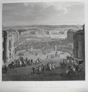 Seconde édition de cet important ouvrage, avec le texte sans vignettes, ni culs-de-lampe ni ornements sur bois. Illustré de plus de 1.000 planches réalisées au moyen du diagraphe mis au point par l'auteur (1794-1841) figurant des plans et vues du château, des scènes historiques, des portraits, des statues, etc. Les 4 vol. in-4° renferment la description des peintures et sculptures par Jules Janin. Parue en 460 livraisons (dont les suppléments), la publication est contemporaine de l'ouverture au public de Versailles, transformé par Louis-Philippe en musée dédié aux gloires nationales.