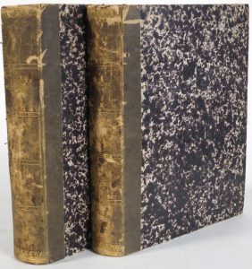 2 vol. in-4° : [4]-4-xv-[1]-649-6, [4]-iv-744 pp. (rouss., nombreuses aux débuts et fins des vol., qqs piqûres parfois plus nombreuses, qqs pp. lég. brunies, une déch. marg. sans manque au vol. I, mouill. marg. à la p. 403 du vol. II). Rel. de l'époque : demi-basane kaki, plats de papier marbré, dos lisses avec filets et roul. dorés, tr. jaspées de bleu (us., cuir frotté, éraflures, mors sup. du vol. II part. fendu).