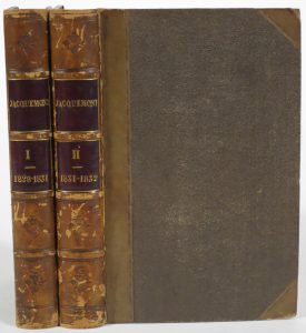 JACQUEMONT, Victor.- Correspondance [...] avec sa famille et plusieurs de ses amis, pendant son voyage dans l'Inde. (1828-1831 [- 1831-1832]). Bruxelles, H. Dumont; Londres, Dulau, 1834.