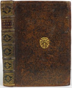 In-4° : [8]-347-[5] pp.; 28 h.-t. (rouss. brunes passim parfois fortes et concentrées, qqs ff. brunis). Rel. armoriée de l'époque : plein veau moucheté, triple filet doré cernant des armoiries dorées, dos fleuronné doré à nerfs, roul. dorée sur les coupes (coupes, coiffes et coins restaurés, mors fendillés, plat inf. lég. frotté avec pet. épidermures).