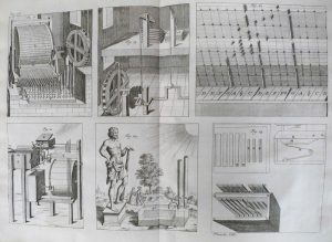 Complet des 42 hors-texte figurant des plans de jardins et de parterres, palissades, boulingrins, portiques, cabinets, colonnades et cascades, des plans de bois et bosquets avec cabinets et salons et un grand labyrinthe, des vues et schémas techniques de machines hydrauliques : pompes, orgues et un étonnant carrousel aquatique avec les figures de Neptune, des tritons et d'autres personnages projetant des jets d'eau tout en tournant dans un petit lac à l'intérieur d'une grotte.