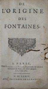 [ PERRAULT, Pierre].- De l'origine des fontaines. Paris, Pierre Le Petit, 1674.