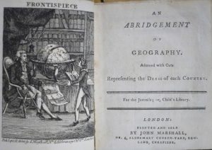 AN ABRIDGEMENT OF GEOGRAPHY. Adorned with cuts representing the dress of each country. For the Juvelise; or, Child's Library. London, printed and sold by John Marshall, [c. 1800].