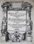 Illustré de nombreux schémas in texto et d'un titre typographique dans un encadrement architectural avec allégories des mathématiques et sciences.