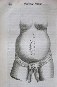Seconde édition, augmentée, de cette réunion d'observations précises, e.a. dans le domaine de la gynécologie, par le chirurgien de la ville d'Amsterdam; illustrée de qqs in texto. Plein parchemin de l'ép.