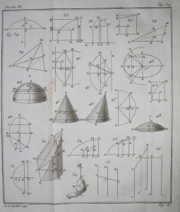 ÉDITION ORIGINALE de cet ouvrage par J.-F. Marie (1738-1801), professeur de mathématiques au Collège Mazarin, traitant à la fois de mécanique statique (détermination du centre de gravité, équilibre des machines, vis d'Archimède...) et dynamique (mouvement d'un point libre sollicité par des puissances quelconques, mouvement d'oscillation, centre spontané de rotation...). Illustré de 12 planches dépliantes.