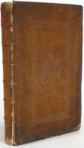 In-f° : [215] lvs (pp. edges used, dampstains, brown spots). Contemporary emblazoned binding : buckskin leather, decorated boards with blind roll-stamps and fleurons, coat of arms in the middle, blind decorated ribbed spine, red sprinkled edges (upper board detached, lacks of leather esp. at 1 corner, turn ins lacking, split back).