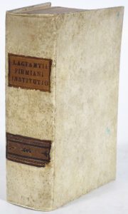 LACTANTIUS, Firmianus Lucius Coelius, dit.- Divinarum institutionum libri septem, proxime castigati, et aucti [...]. Tertulliani liber apologeticus cum indice. ( Venetiis, in aedibus haeredum Aldi, et Andreas Soceri, mense martio) 1535.