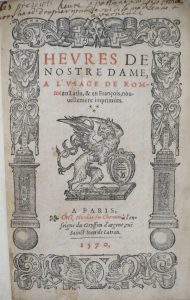 HEURES DE NOSTRE DAME, À L'USAGE DE ROMME en latin, & en françois, nouvellement imprimées. Paris, Nicolas Du Chemin, 1570.