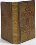 Rel. remarquable de l'époque : plein veau richement décoré, plats cernés de filets dorés et listel rehaussé de cire noire, larges écoinçons azurés, grand médaillon central composé aux filets et petits fers dorés et entouré d'une guirlande de petits fers azurés, avec des parties rehaussées de cire noire, dos lisse muet compartimenté aux filets et orné "à la grotesque", filet doré sur les coupes, hachures sur les coiffes, tr. dorées (plat sup. dérelié restauré, qqs rehauts de cire en partie passés, mors inf. lég. fendu).