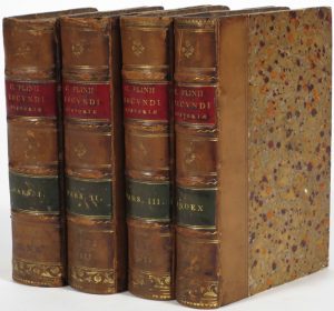 Première édition aldine du fameux ouvr. de Pline l'Ancien. Demi-veau du 18e s. (pet. défauts dont déch. restaurées et mouill. marg., qqs ff. lég. brunis).