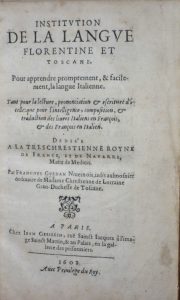 GUEDAN, François.- Institution de la langue florentine et toscane. Pour apprendre promptement, & facilement, la langue italienne [...]. Paris, Jean Gesselin, 1602.