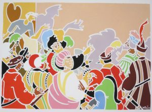 Illustré de 30 très grands bois par Klein mis en couleurs à la main par l'artiste et les Compagnons Imagiers de Damme. Introduction et colophon en français et néerlandais.