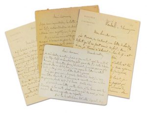 Huysmans Joris-Karl. Lettre autographe signée. « Dimanche » ; 3 pages in-16. « Ouf ! la scène aeu lieu, ce matin. Déluge de larmes, de récriminations, d’attaques contre la mère Thybaut, etc. J’ai essayé de la pauser, de mon mieux. Comme, en