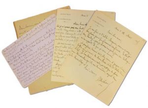 Huysmans Joris-Karl. Ensemble de 2 lettres autographes signées : — Sans date ; 2 pages in-16 oblongues. « Je n’ai pas vu le jeune homme dont vous me parlez, mais si vous le voyez, dites-lui donc qu’il achète simplement la Libre parole