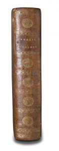 in-8, veau flammé, dos lisse à faux nerfs et fleurons dorés, pièce de titre havane (reliure très légèrement postérieure) ; XV, [1] Approbation, 526 pp. Les fanfares gravées sont comprises dans la pagination et forment les pp. 433 à 446 (le f. 447-448 qui est blanc est absent comme à la plupart des exemplaires) 19 planches dépliantes gravés sur bois, imprimées sur papier bleu clair ou vert pâle. Ces planches sont les mêmes que celles de la première édition, celles du chien, du lièvre et du daim sont nouvelles.