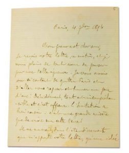 Huysmans Joris-Karl. Lettre autographe signée. Paris, le 4 septembre 1894 ; 2 pages 1/2 in-12. « Je reçois votre lettre ce matin, et je vous plains de tout coeur de passer par une telle épreuve. Je vous avais vu si content de quitter Paris et