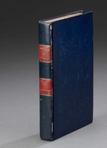 in-8, plein cartonnage à la bradel, titre et auteur doré sur 2 étiquettes de maroquin vieux rouge, non rogné( charnières légèrement frottées, rousseurs).