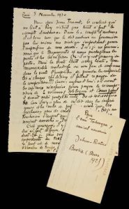 Rictus Jehan (Gabriel Randon de Saint-Amand, dit) [Boulogne-sur-Mer, 1867 - Paris, 1933], poète français. Lettre autographe signée, adressée à Jean Tenaut. Paris, le 8 novembre 1930 ; 2 pages in-4°. « Le contrat qui me liait à Rey n’était pas