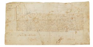 Une demi-feuille de parchemin (17 x 34 cm.) écrite en français à l’encre brune. Double lettrine. Sans son sceau.