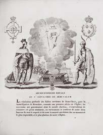 Jérusalem, établie à Paris, par Saint Louis, roi de France. Paris, imprimerie de Moreau, sd. [1823]. In-4, demi-basane brune, dos lisse orné, pièce de titre de maroquin vert (reliure de l’époque). Grande vignette répétée au début de chacune des parties. Coiffes et coins usagés, quelques piqures en fin de volume.