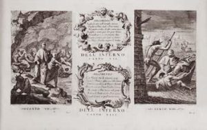 Tiré à part des illustrations (planches, en-tête et culs-de-lampe) de l’édition de La Divina Commedia, publiée à Venise en 1757 et 1758 par Antonio Zatta. Une mention manuscrite de l’époque en début d’ouvrage explique « on a supprimé l’épitre dédicatoire [à Boniface VIII] qui devait se trouver ici, comme un écris injurieux contre le pape, en ce cas on devrait aussi supprimer tout l’ouvrage qui n’est qu’une satire ». Coins et coupes usagés, coiffes frottées.