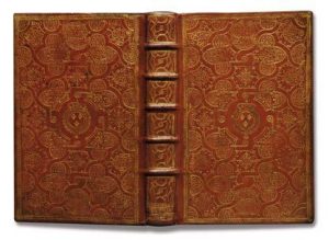 réalisé aux petits fers au dos et sur les plat, tranches dorées, gardes de papier dominoté à fond d’or (reliure de l’époque). Exemplaire réglé, illustré de 3 planches gravées. Exemplaire aux armes de France placées postérieurement au centre des plats. Quelques piqures, coiffes et coins restaurés.