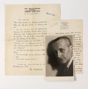 Robert MALLET-STEVENS - deux lettres et un portrait par Laure ALBIN GUILLOT MALLET STEVENS ET VICHY