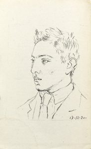 In-12 broché. Édition en partie originale ornée d'un portrait de Radiguet par Picasso. Un des exemplaires numérotés sur Hollande, troisième papier après 20 Chine et 50 Japon, comportant un état supplémentaire sur Chine du portrait. Couverture défraîchie.