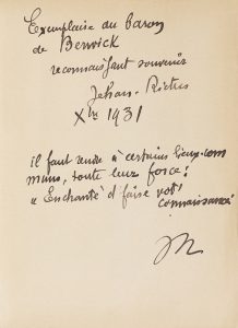 In-12 pleine basane fauve, dos à quatre nerfs, titre et tête or. Couvertures illustrées conservées. Dessins de Steinlen. Édition enrichie d'un envoi autographe signé de l'auteur : "Exemplaire du Baron de Berwick reconnaissant souvenir 1931 / Il faut rendre à certains lieux communs, toute leur force : "Enchanté d'faire vot' connaissance