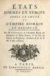 ANVILLE (Sieur d'). États formés en Europe après la chute de l'Empire romain en Occident. Paris, Imprimerie royale, 1771,