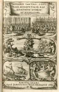 ARRIEN.- (Titre en grec et en latin) Arriani Ars Tactica, Acies Contra Alanos, Periplus Ponti Euxini, Periplus Maris Erythraei, Liber De Venatione, Epicteti Enchiridion, Ejusdem Apopthegmata et Fragmenta, Quae in Joannis Stobaei Florilegio, et in...