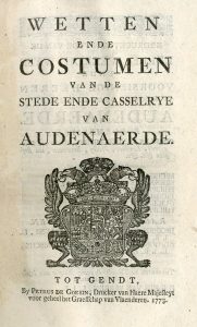 AUDENAERDE.- Wetten ende costumen van de stede ende casselrye van Audenaerde. Gendt, Petrus de Goesin, 1773,