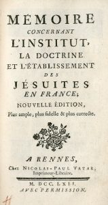 JÉSUITES.- [GRIFFET (Henri)]. Mémoire concernant l'institut, la doctrine et l'établissement des Jésuites en France ; Nouvelle édition, plus ample, plus fidelle et plus correcte. Rennes, Nicolas-Paul Vatar, 1762,
